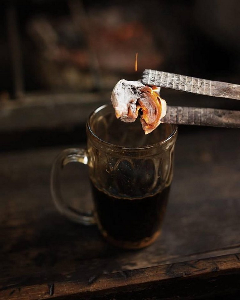 Этот рецепт кофе придумали еще в 1960-м году в Индонезии. И суть его в том, чтобы в кофе добавить кусочек горящего угля. Конечно, это напиток не на каждый день и лучше его готовить на настоящем костре, но попробовать все же стоит.
