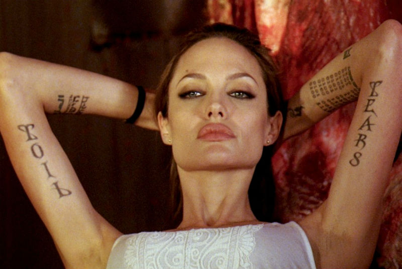 Свою первую татуировку актриса сделала, еще будучи подростком. Тогда это был иероглиф, обозначающий «смерть». Так, Анджелина пыталась доказать себе и миру, что не боится смерти. Потом Джоли вошла во вкус, и на ее теле появилось большое количество замысловатых рисунков: амулеты, кресты, огромный тигр на спине, дьявольское число «13». Кстати, на плече актрисы отмечены координаты мест, где родились все шестеро ее детей.