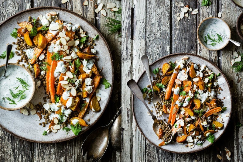 4. Roasted Beet & Carrot Lentil Salad With feta, Yogurt & Dill