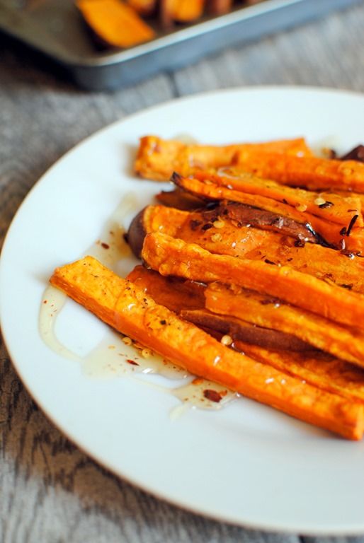 Baking fruits and veggies is definitely a thing during chilly autumn months. This deliciously spicy mouth-watering sweet potato recipe will become your perfect autumn dinner. Hot honey sauce somehow makes everything even tastier!
